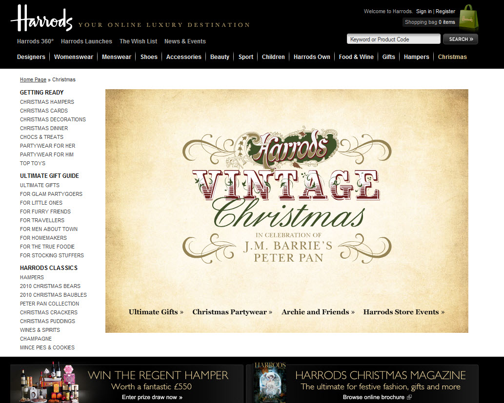 eMarketer predicts that holiday e-commerce spending will hit $38.5 billion this season, so I decided to look at how e-tailers have decorated for Christmas so far. Amidst a sea of sites lacking in holiday cheer (and some creativity), I did manage to find some pretty cool designs: