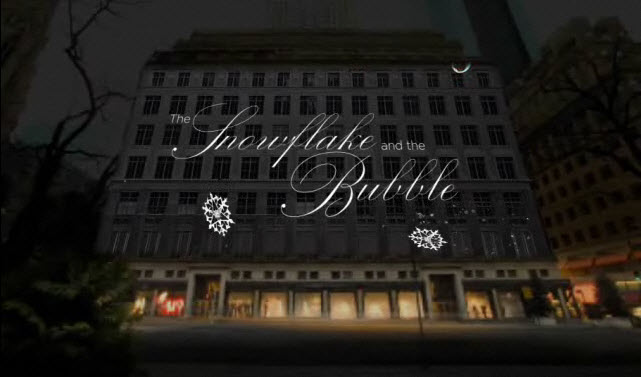 Saks 5th Avenue: The bouncing glass ornament immediately appears when you go to the site and links to a holiday video called “The Snowflake and the Bubble”.