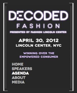 Today marks the date of Decoded Fashion, a forum series that launches at Lincoln Center focused on the growing intersection of technology startups and the fashion industry. Keynote speakers include Melisa Goldie, Calvin Klein’s Chief Creative Officer, CEO of Tumblr, David Karp, and CEO and Founder of Bonobos, Andy Dunn. Also taking place, will be a designer panel that will include names like Nicole Miller and thought leaders from Alice+Olivia and Kate Spade. Not surprisingly, brands like Rebecca Minkoff are also participating.