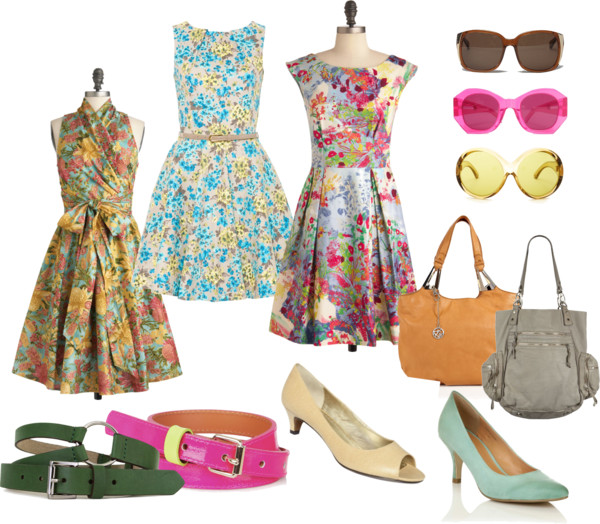 I suggest adding sleek, modern sunglasses, a big slouchy bag, and a bold belt to your 50’s-style dress. Don’t go overboard on the accessories, but do add some to keep it fresh. This look is perfect for any summer day’s occasion, from a picnic, to a wedding, to a stroll in the park.