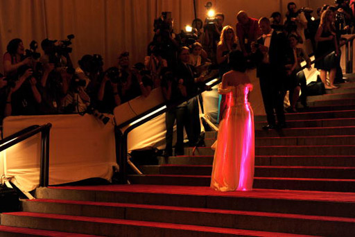 Katy Perry rocked a silk chiffon gown created by CuteCircuit that was unlike any other couture gown at the MET Costume Institute Gala that night- this one light up in rainbow colors from the work of more than 3,000 LEDs.